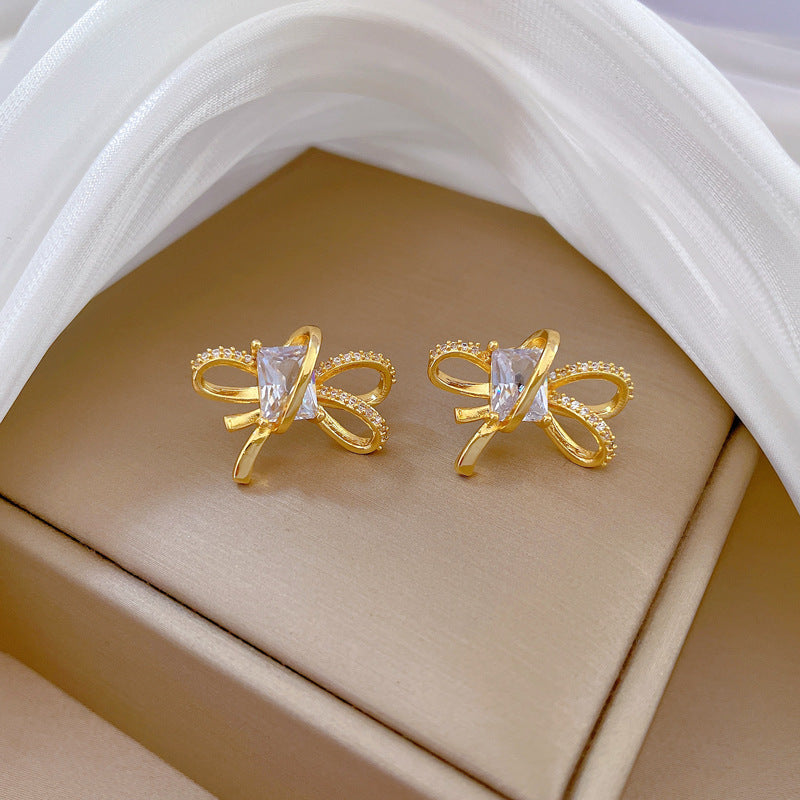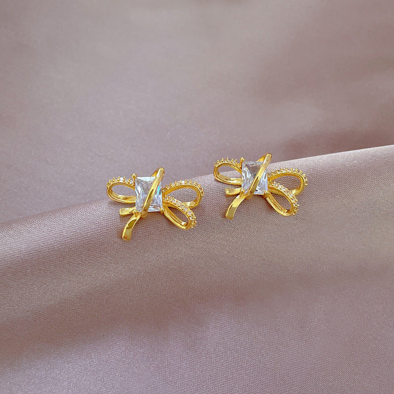 Stainless steel gold plated clear zirconia set.